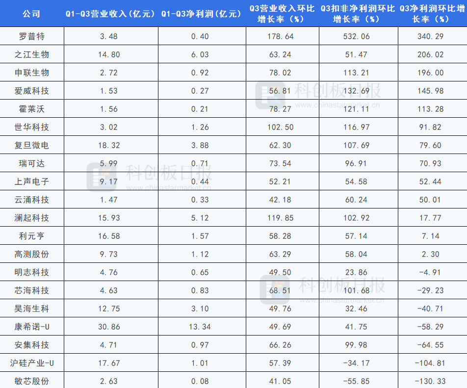 多家科创板公司披露三季报