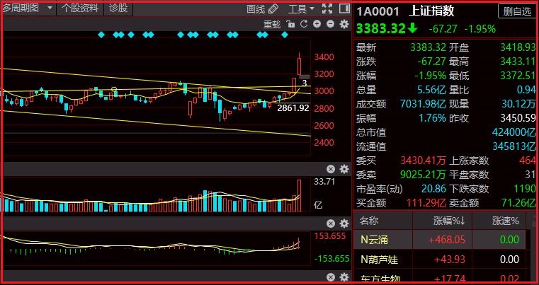 1.周K线图中,本周放量拉升,创出3456年内新高;