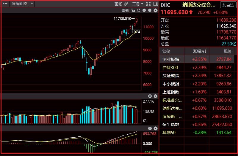 美东时间周五,美股三大指数集体收涨,纳指、标普创收盘历史新高。截止收盘,道指涨0.57%,纳指涨0.60%,标普500指数涨0.67%。