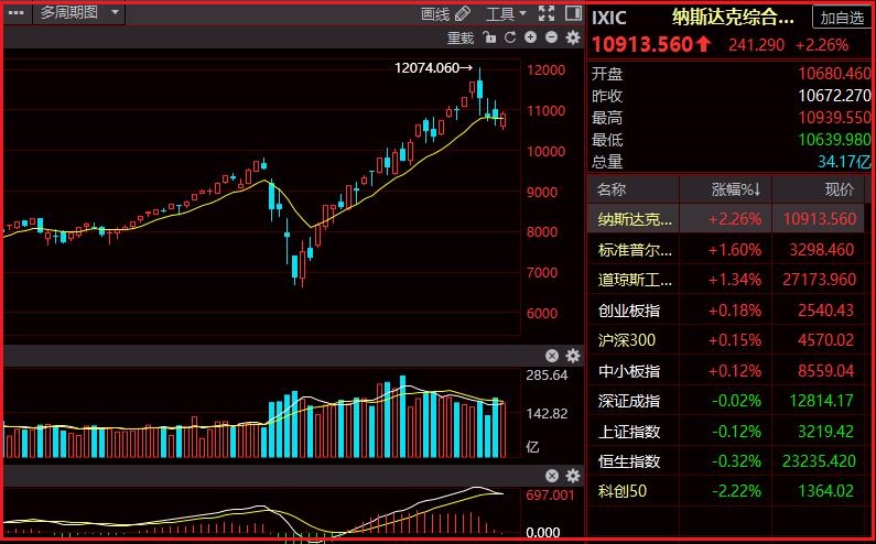 美国市场,东时间周五,美国三大股指尾盘拉升集体收涨,道指涨逾350点,纳指涨2.26%,标普500指数涨1.6%。波音涨近7%,领涨道指。科技股普涨,苹果涨3.75%,特斯拉涨超5%,微软涨超2%。