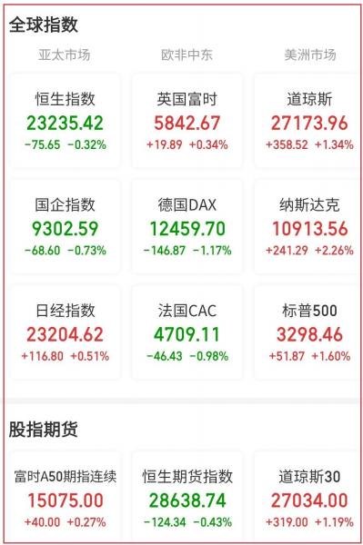 亚太股市方面,日经225指数涨0.51%,收于23204.62点,全周收跌0.67%。韩国KOSPI指数收涨0.27%,收于2278.79点,全周收跌5.54%。澳大利亚指数收涨1.39%,收于6140.50点,全周收涨1.37%。