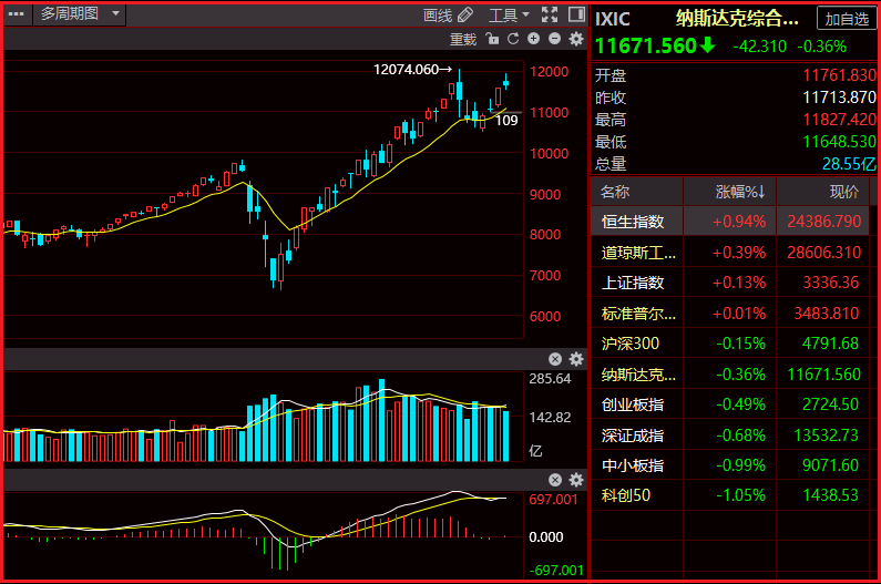 美东时间10月16日收盘,道指涨0.39%报28606.31点;纳指跌0.36%报11671.56点,已是连续第四个交易日下滑;标普500涨0.01%报3483.81点。本周,道指涨0.07%,纳指涨0.79%,标普500指数涨0.19%。纳指连涨四周,标普500指数和道指连涨三周。