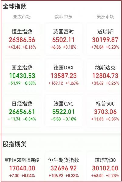 亚太股市方面,日经225指数收跌0.04%,收于26656.61点,全周收跌0.40%。韩国KOSPI指数收涨1.70%,收于2806.86点,全周收涨1.25%。澳大利亚指数收涨0.36%,收于6917.50点,全周收跌0.10%。