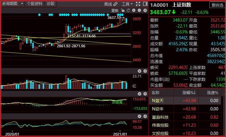 此次回调是多方面因素共同作用的结果,一方面是货币政策有紧缩的趋势,另一方面是外围市场出现调整,还有抱团股的瓦解,以及临近春节等因素。一般来说,春节之前从股市套现资金的人会大幅增加,基金要应付赎回压力,机构要进行年底分红,散户过节要用钱,而大盘又创出新高,逢高兑现者自然也就随之增加。历年来,春节之前往往会见高回落,今年看来也没有例外,而下周大盘依然要承受这种兑现的压力。