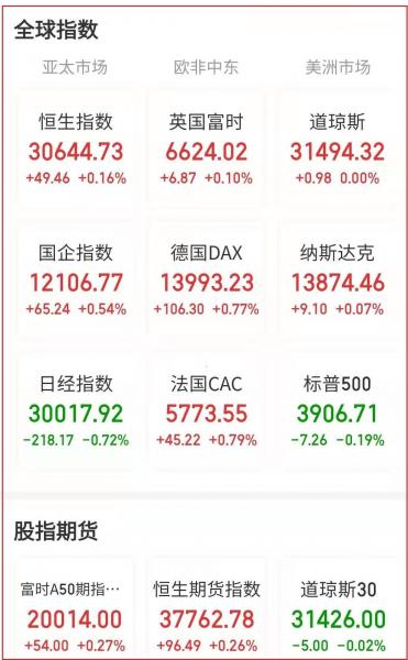 在欧洲各国股市中,德国DAX 30指数收跌0.40%,报收于13993.23点;英国富时100指数收涨0.52%,报收于6624.02点;法国CAC 40指数收涨1.23%,报收于5773.55点。与此同时,意大利富时MIB指数收跌1.17%,报收于23136.31点。