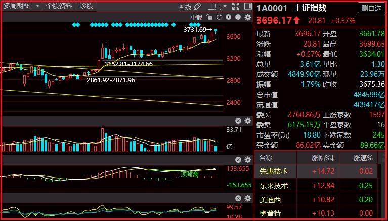 3. 股市春节后开市只有两个交易日,上证指数连涨两天,周五上证指数收盘3696点上涨20点,周五股市盘中震荡激烈,上证指数最多下跌40点,在券商板块拉高下大盘才翻红,创业板一直是行情的风向标涨幅惊人调整是正常情况,这两天走势共同点就是盘中大多数股票在上涨,行情不是1月份和去年12月份只有少数股票在涨拉高指数,现在是行情全面开花,牛气冲天,很多低价股不断爆发上涨。中国股市当前决不是只有价值投资才能带领大盘上涨的,很多人就是不相信,只是中国股市还没有完全达到成熟股市目标,更何况中国当前注册制改革根本就没有完成,政策市的中国A股需要大多数股票要表现一番,阶段性全面牛市行情已经展开。