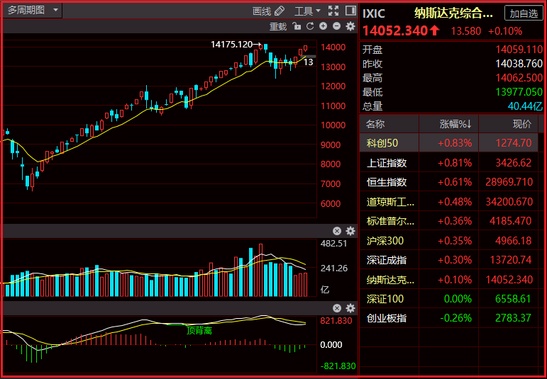 美东时间周五,美股三大指数小幅收涨,道指和标普500指数续创历史新高、周线四连涨。盘面上,银行股、大麻股普涨,大型科技股、芯片股、新能源汽车股、航运股、区块链概念股涨跌各异,油气股普跌。截止收盘,道琼斯工业指数涨164.68点,涨幅0.48%,报34200.67点;纳斯达克指数涨13.58点,涨幅0.10%,报14052.34点;标普500指数涨15.05点,涨幅0.36%,报4185.47点。