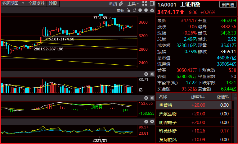 周末信息错综复杂,譬如全球各国领导人召开的气候视屏会议,全球纷纷表示重视碳排放、碳中和指标,我国同样制订了发展核能、风能、光伏的具体指标,特别是提出2030年达到的目标还有不到九年时间,可以说碳排放相关概念是长期题材,另外新能源、汽车智能化也是具有很强的潜在力,只不过短期炒作之后回踩一笔,调整到低点是机会。另外顺周期涨价概念也有蠢蠢欲动迹象,我国高层密切关注基础原材料涨价,这一点是全球联动所造成的,一方面全球经济复苏大趋势不可改变,另一方面随着疫苗接种普及,全球疫情短暂再次严重是暂时的,随着全球抗击疫情努力下肯定能度过难关。