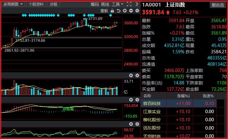 A股市场注意几个现象:一是周五大盘虽然反弹,但大盘量能没有放大,特别是早盘大盘低开下跌时,大盘也没有出现放量,说明场外资金没有借大盘低开入场抄底,那就说明3560点有可能不是本轮调整的低点。二是技术上,大盘5日线已经有向下死叉10日线的趋势,所以,最近两天大盘必须要拉起,否则,大盘技术上一旦死叉,大盘就有向下回踩3530点甚至3500点附近的可能。三是周五大盘虽然涨幅不大,但外资大幅流入超过50亿元,这部分资金的流入也是封杀了大盘下跌空间。后期大盘向下大跌的概率不大,最终还是以盘整为主,不要认为周五大盘探底回升,大盘就是已经企稳;也不要认为周五如果大盘下跌,后期大盘就会连续大跌,在某队护盘的情况下,在金融股封杀了大盘下跌空间的情况下。短期来看,市场还是上有压力下有支持的震荡走势,短期指数如出现震仓回踩,也应为良性调整,届时仍可补仓无需过度担忧。