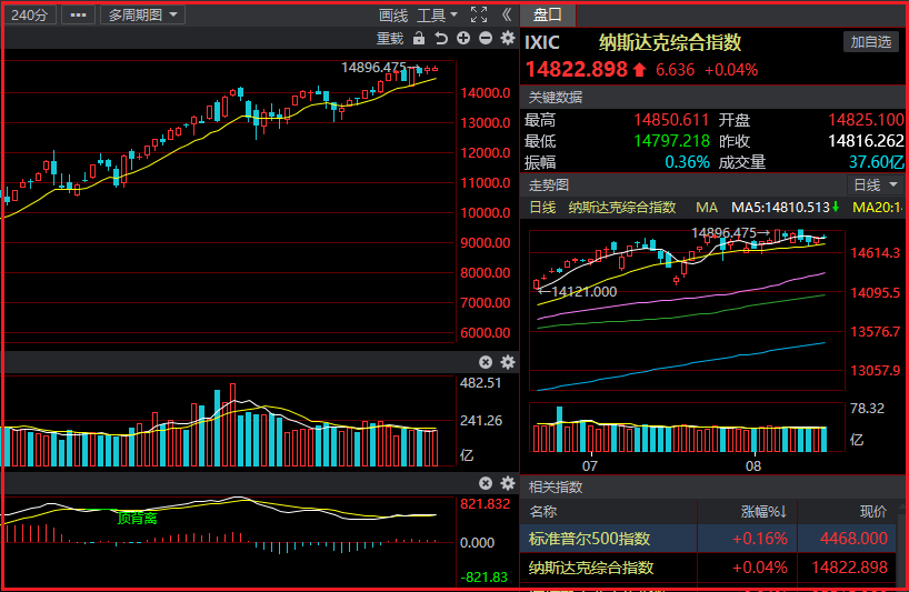 美东时间周五,美国股市三大指数小幅上涨,道指与标普500指数续创收盘历史新高。截止收盘,道指上涨0.04%,纳指上涨0.04%,标普500指数上涨0.16%。