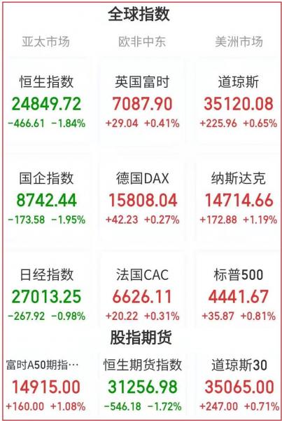 在欧洲各国股市中,德国DAX 30指数收跌1.04%,报收于15808.04点;英国富时100指数跌1.81%,报收于7087.90点;法国CAC 40指数收跌3.91%,报收于6626.11点。与此同时,意大利富时MIB指数收跌2.79%,报收于25916.50点。