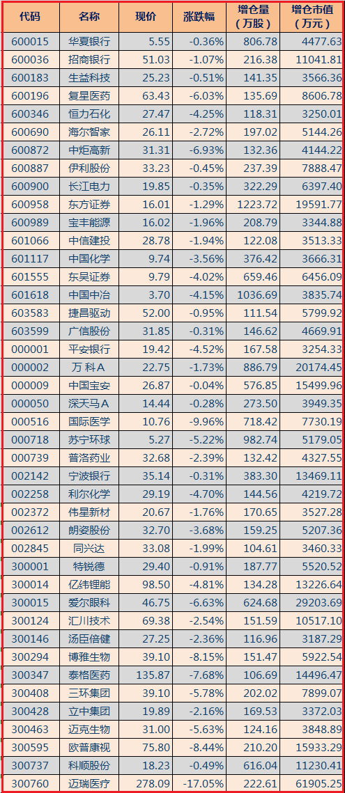 4.北向资金本周流进流出的节奏,一不小心刷新了六年以来的一项新纪录。8月19日,北向资金全天单边净卖出107.83亿元。次日,北向资金全天再度大幅净卖出108.16亿元,连续两日净卖出超百亿,为2015年7月以来首次。沪指连跌两日,个股绿多红少。历史上,北向资金单日流出超百亿虽然较为罕见,但也有过十余次记录,仅2021年就已发生过两次,而连续两日净流出超百亿,仅有六年之前的一次。结合本周的市场基本面,业内人士指出,北向资金的大幅流出可能有偏好板块估值回调、外围资金短期获利预期减弱、政策整顿等多方面原因。当日股份下跌,而北向逆势增仓方面,迈瑞医疗(300760)、爱尔眼科(300015)、万 科A(000002)三只个股股价下跌,而北向资金却增仓61905.25万元、29203.69万元、20174.45万元,占据增仓金额前三位。其他当日增仓金额超3千万而股价下跌个股如下(已剔除当日除权股票):