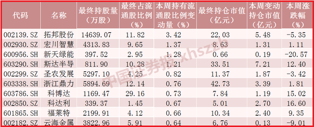 4.数据显示,本周仅交易三个交易日的北向资金累计净流入逾15亿元,其中沪股通资金净流入37.56亿元,深股通资金净流出22.54亿元。本周北向资金对570只股票的持股数增加,对945只股票进行了减仓,其中对宁德时代加仓金额最大,对中国平安的减仓金额最大。从持有流通股比例情况来看,数据显示,本周北向资金对拓邦股份、宏川智慧、新天绿能、斯达半导4只股票的持有流通股比例增加1个百分点以上,分别增加3.42个百分点、1.37个百分点、1.28个百分点、1.21个百分点。