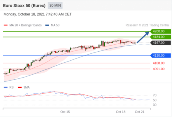 在 4130.00 之上,看涨,目标价位为 4184.00 ,然后为 4200.00 。