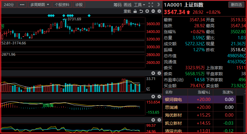 上证指数本周小阴线带上下影线,周跌幅0.98%,成交量和上周持平,缩量状态,收在3547点。不过,上证指数周均线整体继续多头排列,中长期依然是上升趋势不变,本周的回落,收在30周线上方,下方的60周线继续上行本周落在3473点。整体均线看,上证指数的确无法深跌,下方的60周线就是终极支撑。