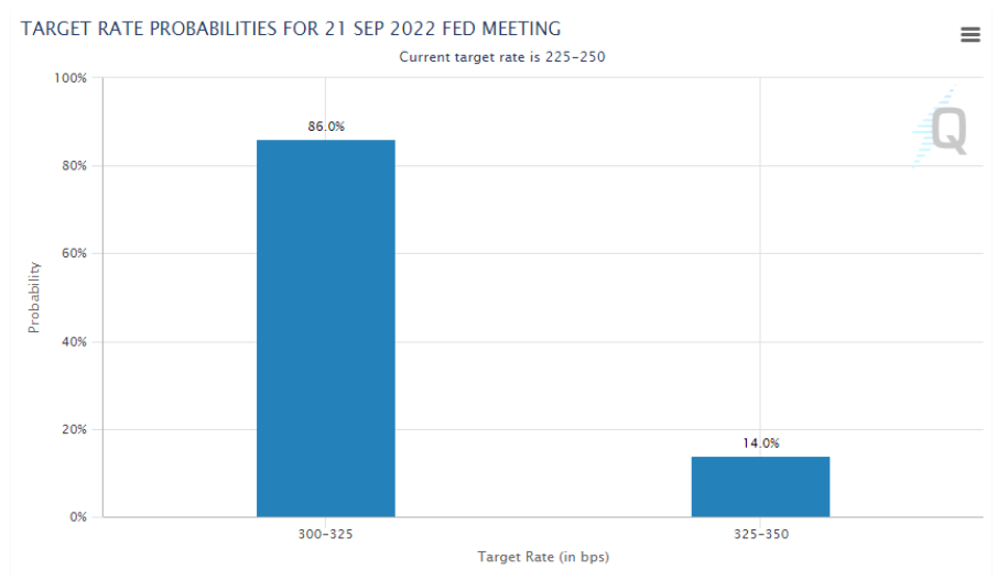 残酷的事实是,在从3月份开始连续四次加息之后,通胀仍然极高且持续存在。 美联储将于北京时间明日凌晨2点开始9月FOC会议并发布书面声明。随后,鲍威尔主席将在半小时后举行新闻发布会。人们普遍预计,美联储将把“联邦基金利率”上调75个基点。C的FdWatch工具预测,加息75个基点的可能性为84%,美联储加息的概率为16%