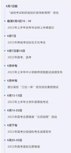 关注6月,除了2021年高考、选考,还有2021年单独考试招生文化考试、部分高校“三位一体”招生综合素质测试、2021年上半年大学外语等级考试等重要考试,时间看仔细咯!