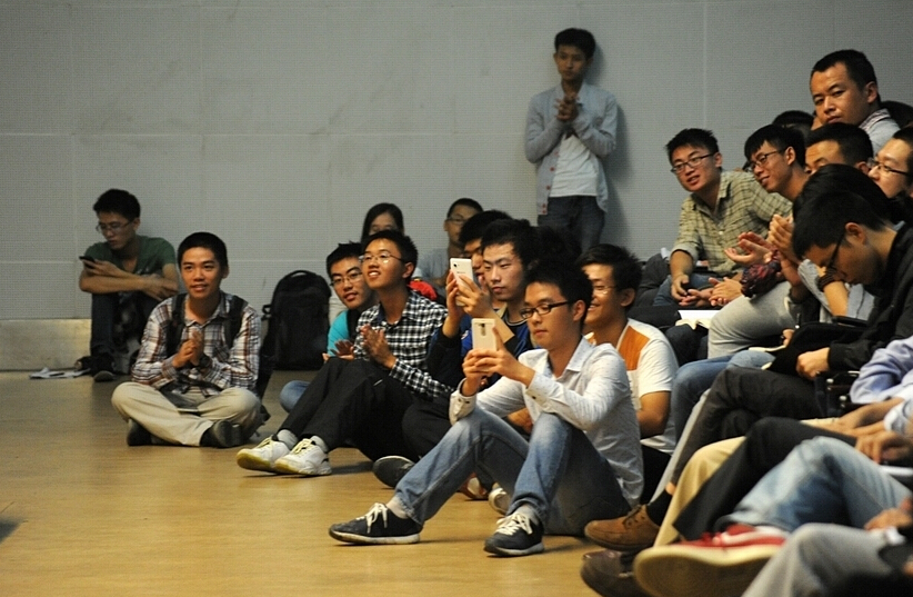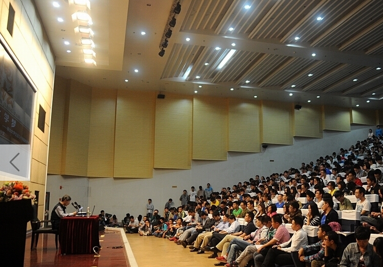 因为话筒原因,学院老师请老先生坐下讲课,全场还是为院士的诚挚响起了掌声。讲座全程持续了90分钟,67岁的老者起立或弯腰鞠躬6次:当主持人在介绍他时,感谢他时,以及每一次学生或老师起立回答问题时。