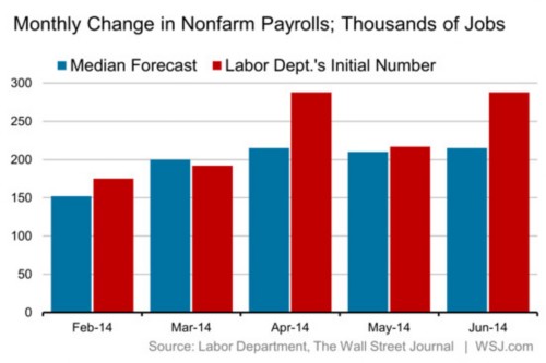 尽管经济学家们对非农数据的预测显得比较乐观,但平均来说,他们却低估了过去五个月中四个月的非农就业增长。对于7月非农数据,普遍的预测是就业增加23.4万个工作,并且失业率下降到6%。超过20万的就业增长将表明美国的就业市场有稳定的改善。此外,还要关注平均小时工资。薪资增长年率依然没有超过2%,而美联储所需要的是更强劲的收入增长。