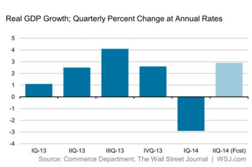 本周三,今年美国第二季度GDP数据将被发布。在2014年年初,极端的严寒天气对美国经济带来了很大影响,因此,经济学家们对二季度GDP反弹有很大预期。经济学家们预计二季度GDP初值年率将增长2.9%,抚平了第一季度缩减2.9%的缺口(这意味着将近6%的重大逆转)。