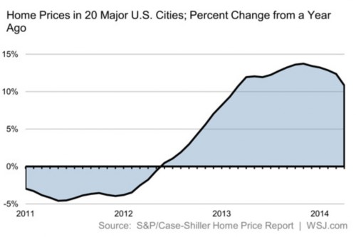 房屋价格的年度增长将会继续放缓。周二将发布美国主要城市的标普希勒房价指数。预计认为,至5月止的12个月内,20个城市的这一指数将增长少于10%,从4月的10.8%和2014年末的14%有所下降。