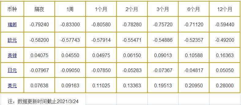 3月24日伦敦银行同业拆借利率: