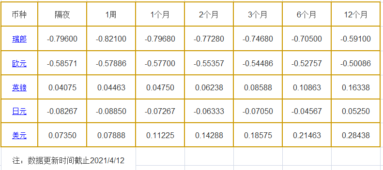 4月12日伦敦银行同业拆借利率: