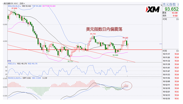 今日就是选举日,随着两位候选人的票数被公布市场也会出现明显的上下波动。今日早盘8点左右市场开始明显出现大波动,美元跌至93.07后快速拉升至93.72,对应其他货币兑都有较大波动。这是消息面的影响。对于当前美元的技术面来看,日线价格和均线保持缠绕,中期均线呈水平,且MACD红线柱显现,多头能量还在保持,布林三线收窄,多技术指标面趋向于偏震荡的走势,且短期震荡偏多一些。