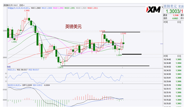 支撑位:1.2943/1.2935-1.2910-1.2855/1.2840-1.2815
