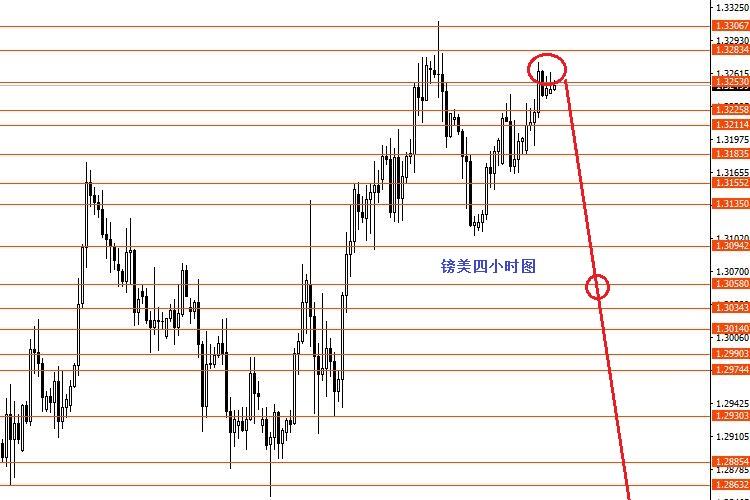 英镑周初正如预期小幅震荡,今日延用周初思路。操作建议:1.3250-1.3280区域做空,止损1.3330,目标先看1.3060,成功跌破后再看向1.2580。控制仓量,严格止损。