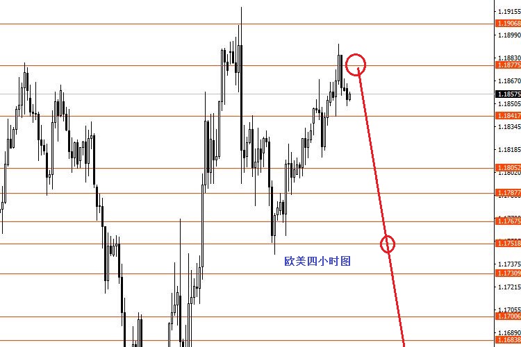 欧元昨日冲高回落,日图收阴,符合预期。今日操作建议:1.1870/1.1880区域做空,止损1.1930,目标先看向1.1805和1.1750,成功跌破1.1750后再看向1.1560和1.1490。控制仓量,严格止损。