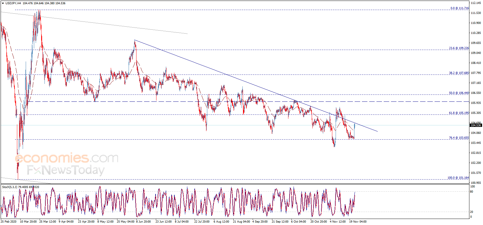 预计今日美元/日元交投将位于支撑位103.70以及阻力位105.20之间。