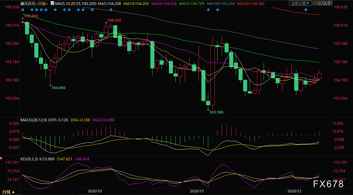 (美元兑日元日线图)北京时间12:00,美元兑日元现报104.44/46。