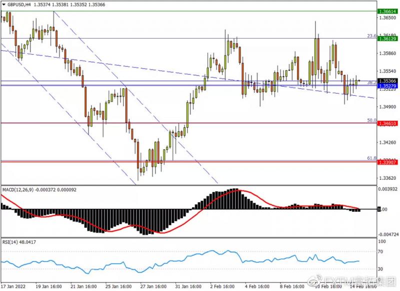 4小时图看,汇价当前依旧围绕去年12月20日-1月13日涨势的38.2%回撤位1.3527一线进行纠缠,如若最终跌破该位及下方的50%回撤位1.3461,则市场将重回2月3日后回撤调整的节奏中,同时也重返中期下降通道。后续支撑方面,曾阻止英镑最新一轮跌势的61.8%回撤位1.3393相对重要;再往下,去年12月17日高点1.3340,以及78.6%回撤位1.3296预计亦有温和买盘承接。技术指标格局与日线形势相仿,MACD在零轴上方温和金叉后走平;RSI在中性水平上方横盘,均无明确方向。