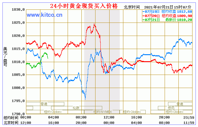 今日黄金价格走势图(2021年7月21日)