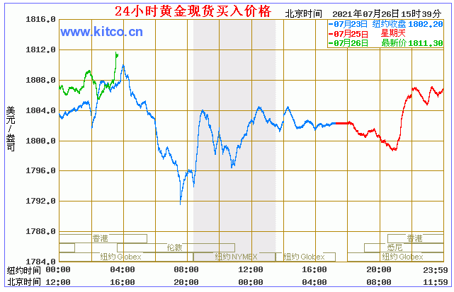 今日黄金价格走势图(2021年7月26日)