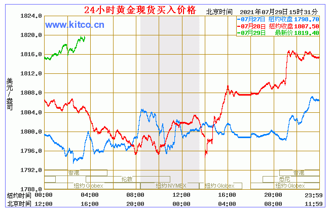 周四(7月29日),现货黄金继续上涨,上涨0.59%,现报1816.46美元/盎司。现货金价在美联储公布利率决策以及美联储主席鲍威尔讲话之后走势不定。此前美联储官员表示,劳动力市场和通胀已经朝着减码债券购买的目标取得了进展。