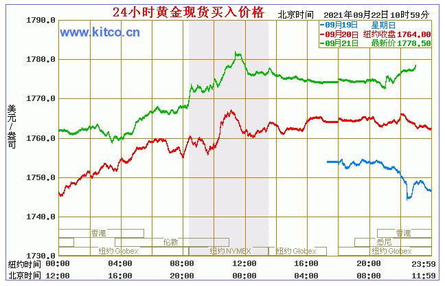 周三(9月22日)亚洲时段,现货黄金持稳于1775附近。周二(9月21日)金价小幅上涨,对全球经济增长的担忧刺激避险买盘,美联储会议周三结束时可能会为削减经济刺激的时间表提供线索。