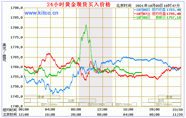 今日黄金价格走势图(2021年10月9日)