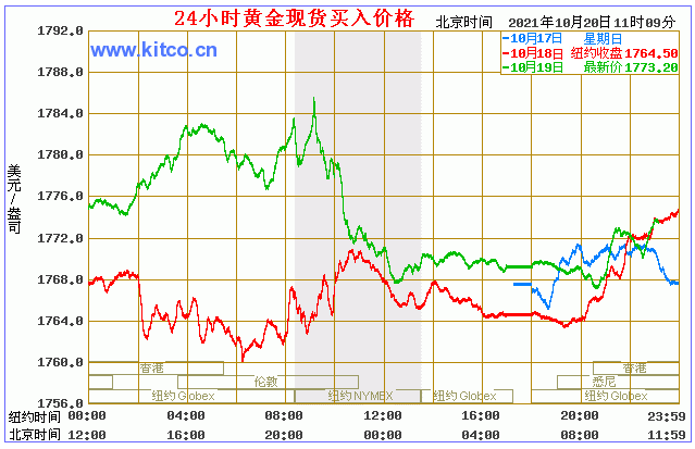 今日黄金价格走势图(2021年10月20日)