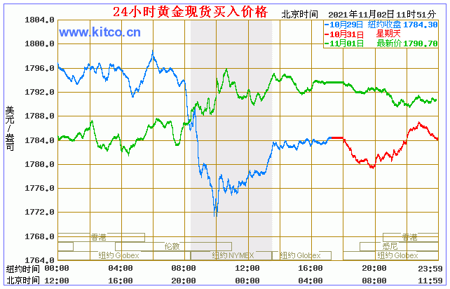 今日黄金价格走势图(2021年11月2日)