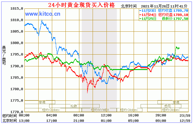 周五(11月26日)亚洲交易时段,避险情绪突然成为交易的明确主题,日本股市重挫、美股期货下跌,日元与黄金这两大避险资产联袂走强,美元/日元重回115下方,金价则回升至1790美元/盎司上方,一度接近1795美元/盎司。