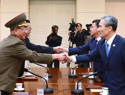 【朝鲜:中方不必呼吁克制】 朝鲜半岛局势出现转机,韩朝代表在最后通牒限期届满后,在板门店举行高级别对话,这也是双方近一年来的首次。对话一直持续到当地时间23号凌晨四点多,暂时休会,媒体报道,双方会在下午三点再度会谈。而在对话期间,韩军保持最高级别的警戒态势,朝军也维持备战状态。【详细】