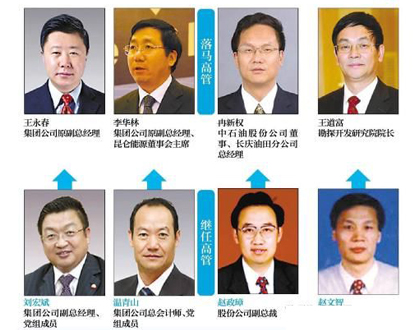 "继王永春之后,中石油昨天再有三名高管因涉嫌严重违纪,目前正接受组织调查。北京青年报记者获悉,在四名高管落马后,中石油为确保公司正常经营,已迅速安排四名继任者接替"出事"高管。北青报记者发现,昨日出事的三名中石油高管同为西南石油大学校友。"