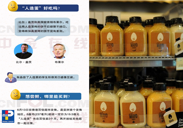 由于它价格只是鸡蛋的一半,亦可能为蛋糕行业青睐。消息人士说,"人造蛋"由美国一名年轻人戴崔克发明。
