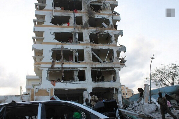 一名自杀式袭击者驾驶一辆卡车,撞上了摩加迪沙"半岛皇宫"酒店外的防爆墙。美联社当地报道员说,这家卡车上装有"成吨"的爆炸物。英国广播公司报道员称,这是他在摩加迪沙所见的"最惨烈的"爆炸场景之一。