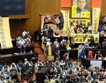 2014年3月18日晚间6点多,台湾数百名反对服贸协议的学生与部分民主团体突破立法院警力,高喊"反服贸",占领立法院议场。事件持续蔓延,23日晚,又占领行政院、检察院等其他部门,高喊"退回服贸"。 【详细】