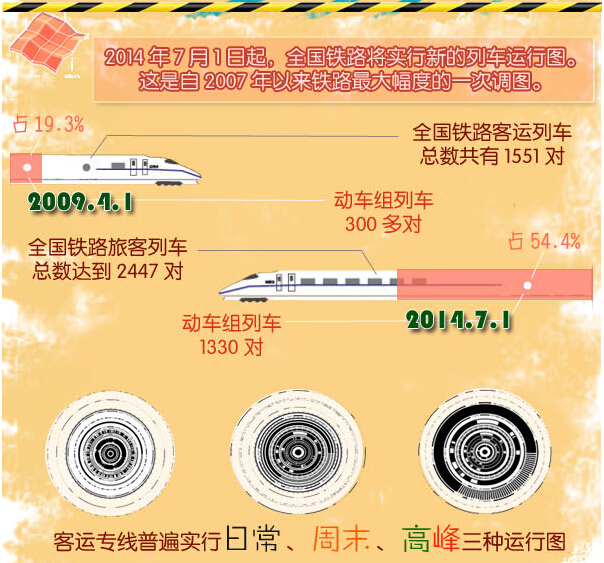 此次调图,还有一组数据引人关注:7月1日调图后,全路旅客列车总数达到2447对,其中动车组列车1330对,占旅客列车总对数的54.4%,超过一半。【详细】