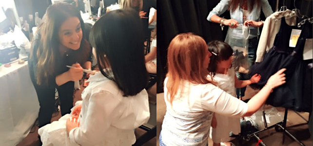 后台的设计师助理带着"小公主"选衣服,化妆师热情为王诗龄化妆。她们大赞Angela超级可爱,对她非常喜欢。