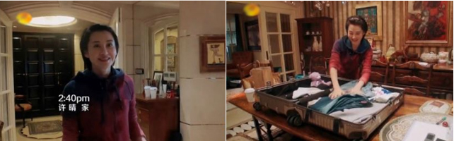 在《花儿与少年》中,许晴的豪宅最为抢眼也最为复杂,她在收拾行李的过程中,穿过各个房间。许晴的家中最少有两个衣帽间,其中一个衣帽间的镜子上全是KITTY猫,她像孩子般地笑着说:“我喜欢KITTY猫。”